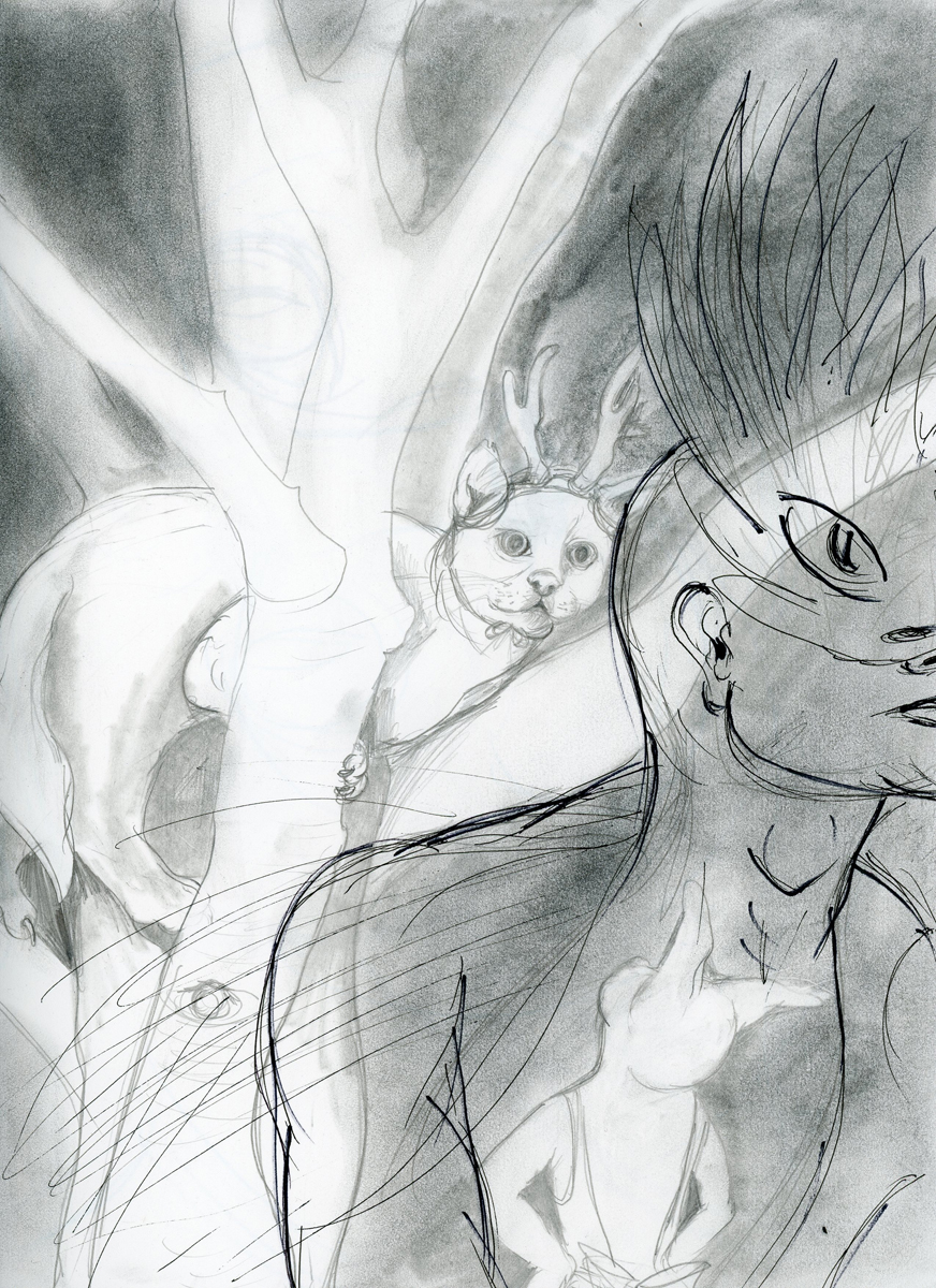 I want to continue the conversation with Bunny. What does she do? How does she dream? What scares her? How does she overcome her fear. That kind of rapport requires fluency. That effortless quality belies infinite small steps at the drawing board. My imagination does not flow from my pencil. I walk backward looking over my shoulder with a mirror to get there. That’s hard to master. And here are some baby steps.